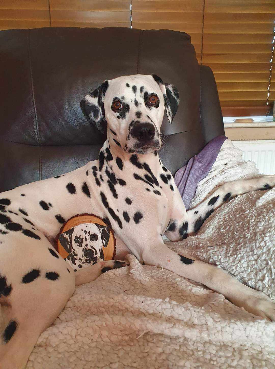 “My boy’s portrait arrived today and words cannot express how overwhelmed I am with it. Scouser sadly left me last Novemberand has left a huge void in my life. Alice has created a wonderful tribute to my fur baby. A wonderful lady with an amazing talent. Can’t thank her enough,“